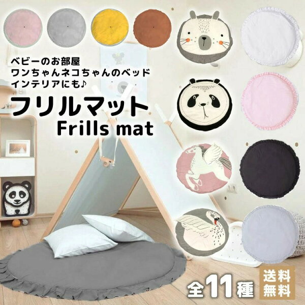 フリルがとっても可愛い柔らかベビーマットです ■素材:表面コットン100% 中綿 ■サイズ直径:約100cm(内フリルが約5cm) 厚さ:約2cm 一つ一つ手作業で作られたラウンドフリルマットです。